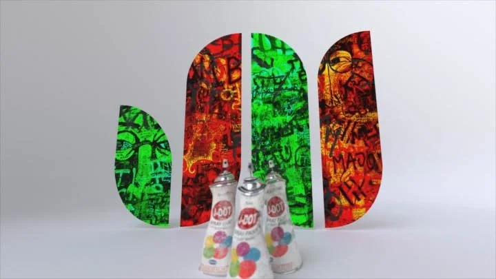 :00 - :03 - Title Card Modeled the paint cans in Zbrush. Textured in Sunstance painter Rigged & animated in C4D